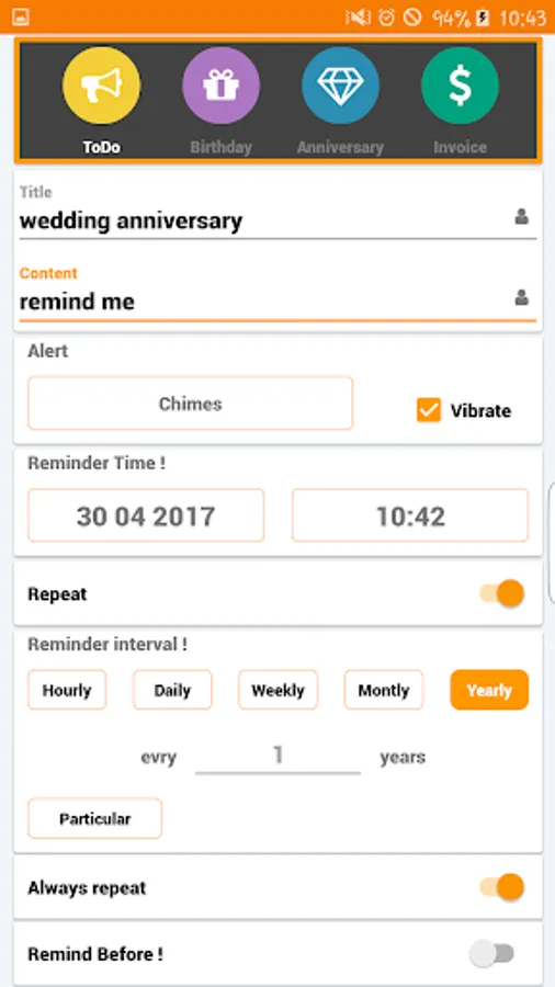 Memory like a sieve? Now there’s no need to remember all those things that you have to do, because To Do Reminder will do that for you! It’s quick and easy to use; you can set a task in the reminder list in mere seconds. It's a best reminder app with alarm.