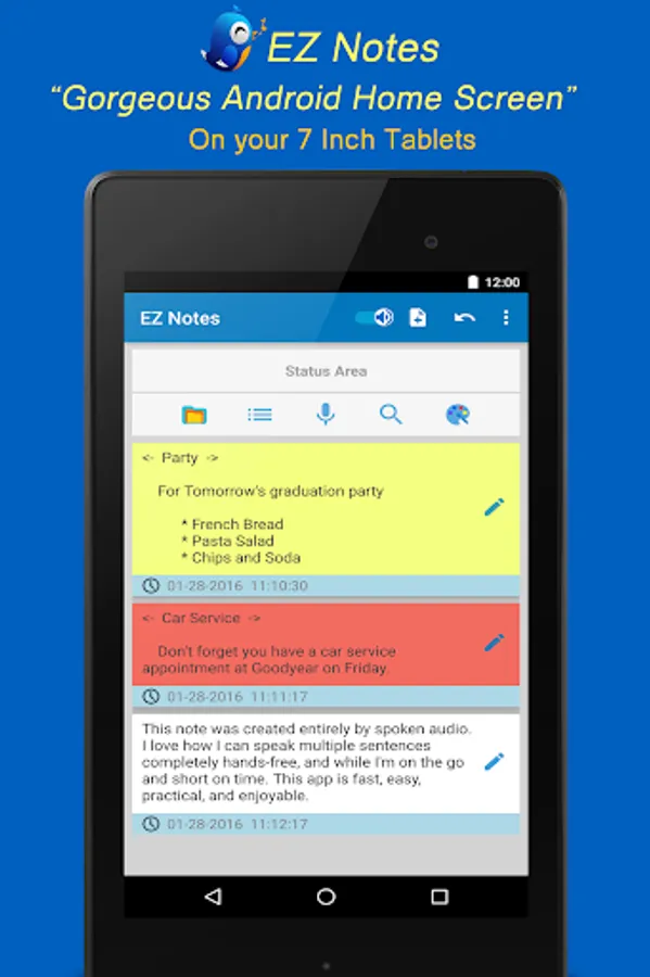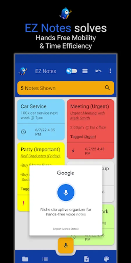 EZ Notes is a niche notes app transforming the productivity and agility of countless lives worldwide. Enjoy incredible Mobility and Time Savings as EZ Notes SIMULTANEOUSLY Transcribes AND Saves voice notes with a single tap! Our proprietary engineering designs transcribe and instantly save voice notes, to deliver you a profound mobile edge over all other notes apps. As the world continues becoming more fast-paced and agile, EZ Notes remains uniquely poised as the indispensable tool for capturing on-the-fly notes wherever we are, in whatever mobile situation, under any time constraint!