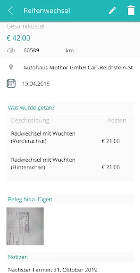 In addition, the app reminds you of important dates around your vehicle (end of warranty, technical reviews, etc.) and