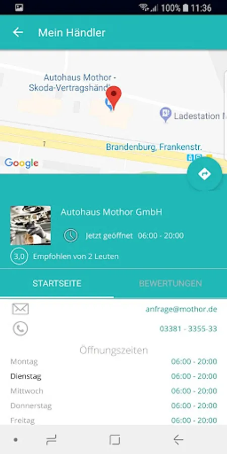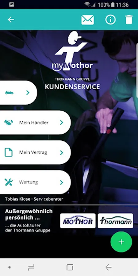 In case of emergency you have all important contact information at hand. Click "call" to call your dealership or write an e-mail to your sales consultant.