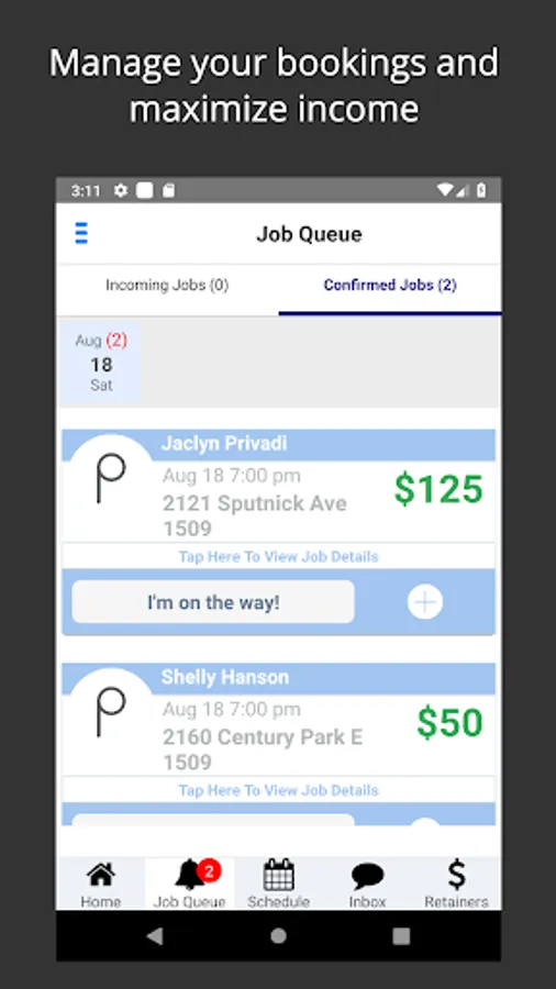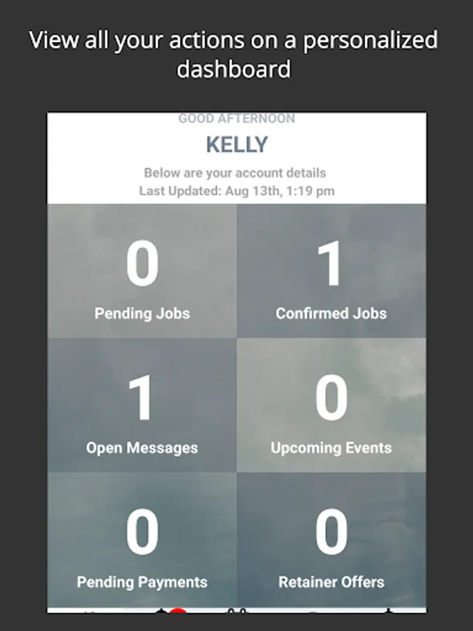 An app for Professionals to manage their work with Priv. Once approved by, this app will allow you to take jobs doing services for Priv. You will manage all of your appointments through the app, as well as set your schedule, and manage your territories and services.