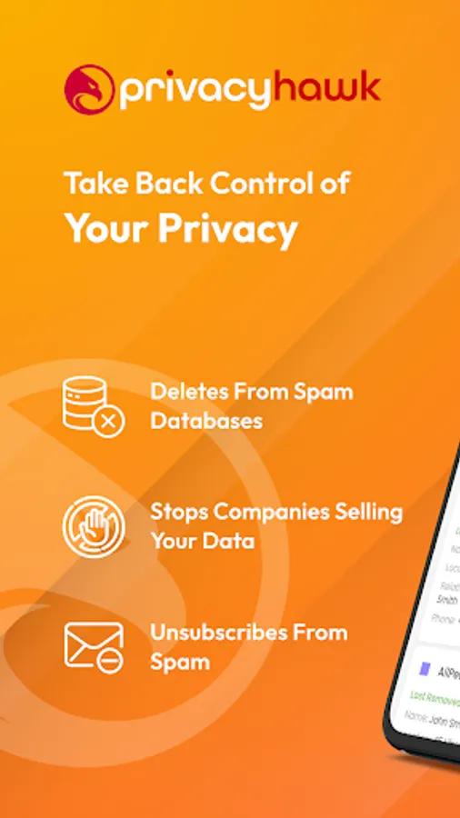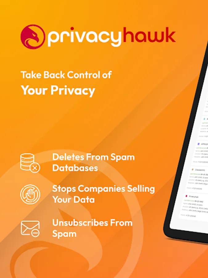 PrivacyHawk helps you 1) delete your private data from spam databases 2) stop companies from selling your data, and 3) unsubscribe from spam emails.