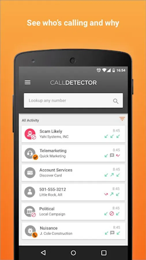 CallDetector empowers you and saves time by identifying unknown numbers and blocking unwanted calls directly from your smartphone.