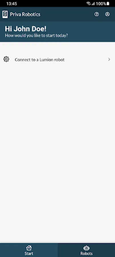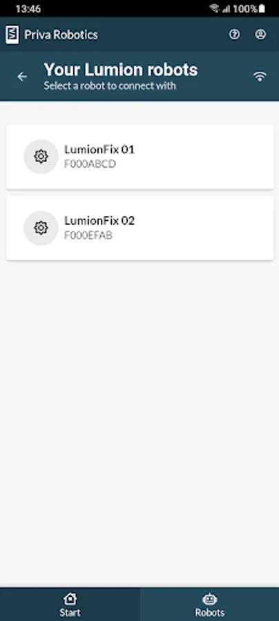 Sign in to your Priva account and the app shows your robots.