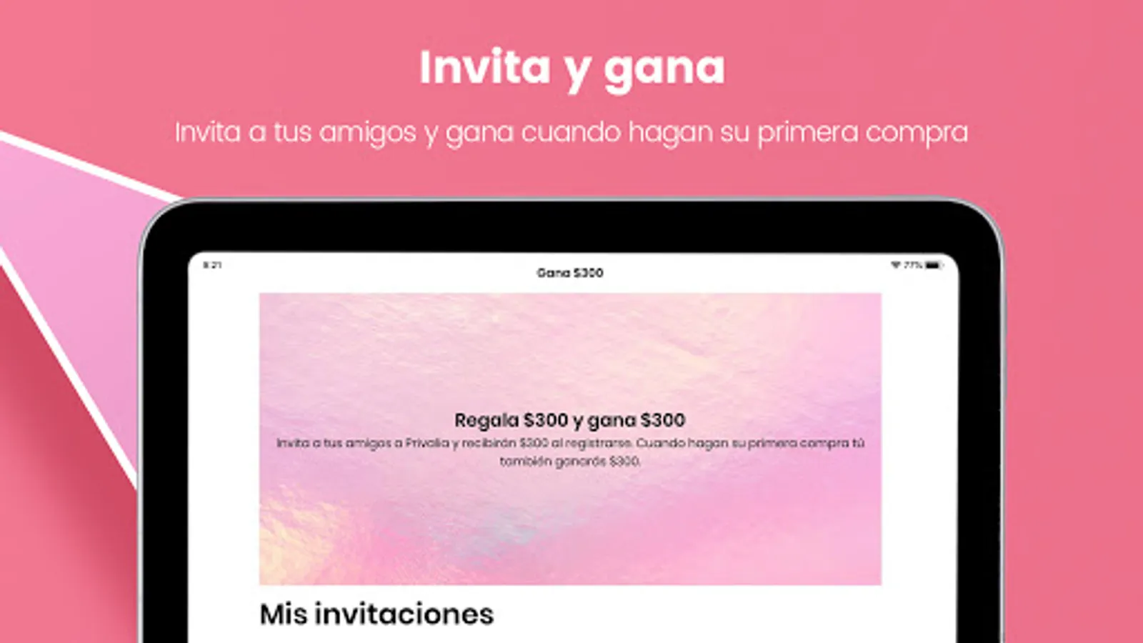 Give a Privalia discount to your friends with your exclusive code. Invite them and when you make your first purchase you will also get an extra discount.