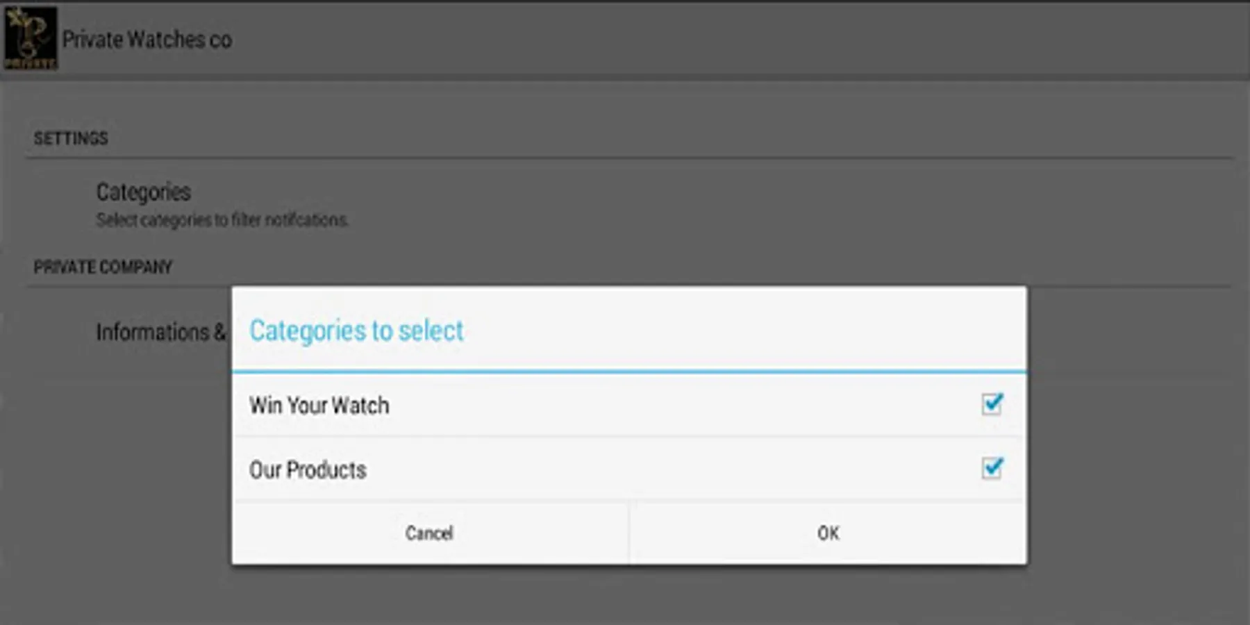 Application by Private Company and used by the company in competitions provided to its customers and informing customers of the latest models in all brands of international watches
