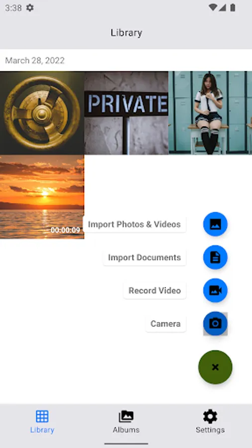 Pictures and videos are stored locally, and the files are encrypted in chains through the password set by the user to ensure that no other applications, including all system applications, can steal the content.