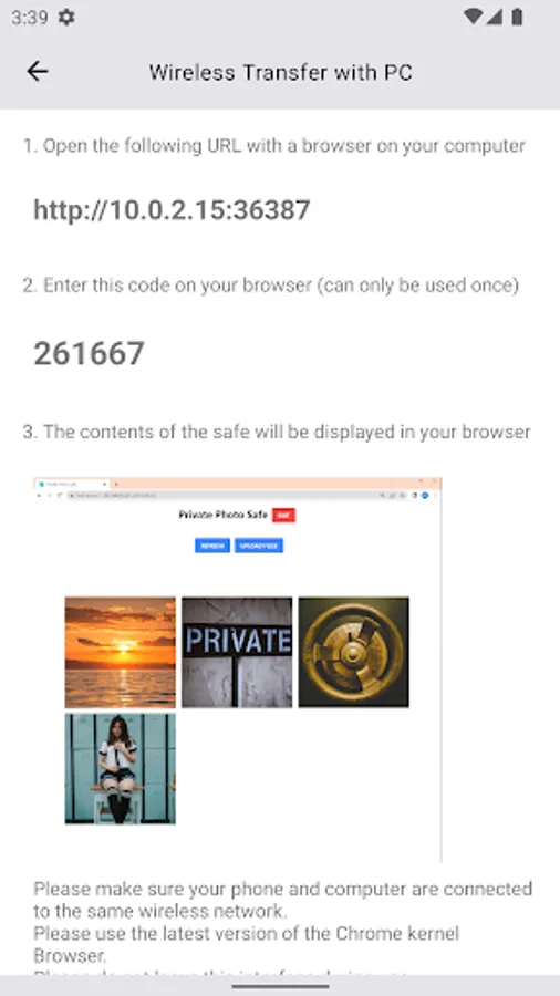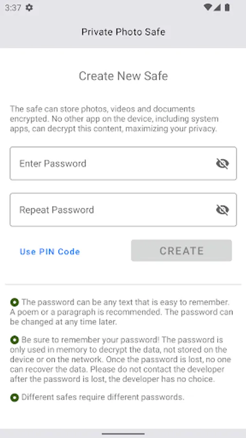Usage Manual: https://privatephotosafe.com/help/usage-manual