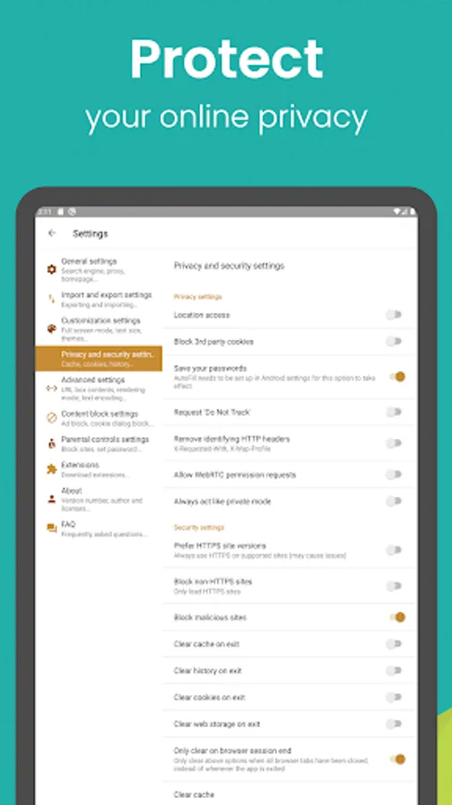 Clear All Data — clear all your tabs and browsing data by just closing the app.
