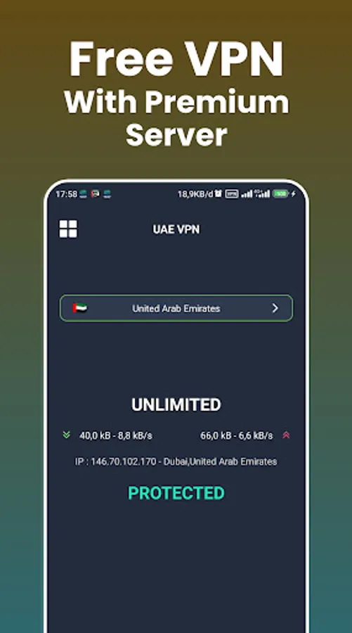 VPN UAE is the latest application specially designed for VPN users with secure and stable connections. You just need to download the app then connect the VPN with one click, no registration required.