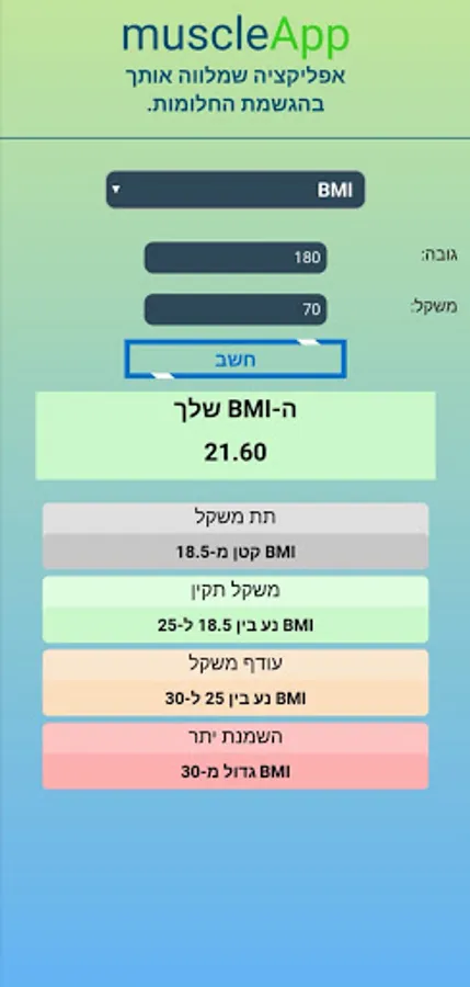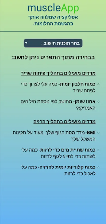 All the calculators you need are concentrated in one application, easy to use and in the Hebrew language.