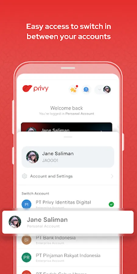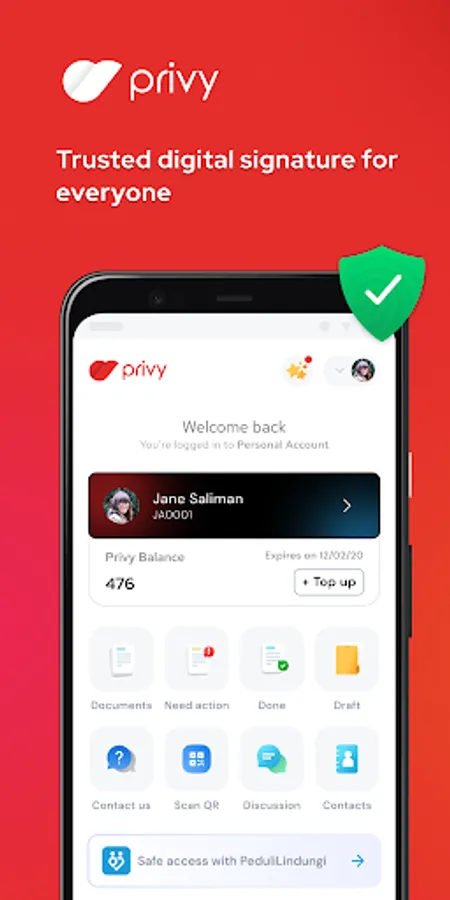 Efficiency is essential for your productivity. Privy provides you an easy and secure way to sign your digital documents. Our digital signature is constructed with asymmetric cryptography and public key infrastructure, ensuring that each signature is a verified identity. As the Subordinate Certification Authority (CA) in Indonesia, Privy is officially acknowledged and approved by the Indonesian Ministry of Communication and Information Technology. So you don’t have to worry, any digital documents signed with Privy are admissible as legal documents. Start your productivity with signing, sharing, and managing your digital documents in an integrated platform with Privy.