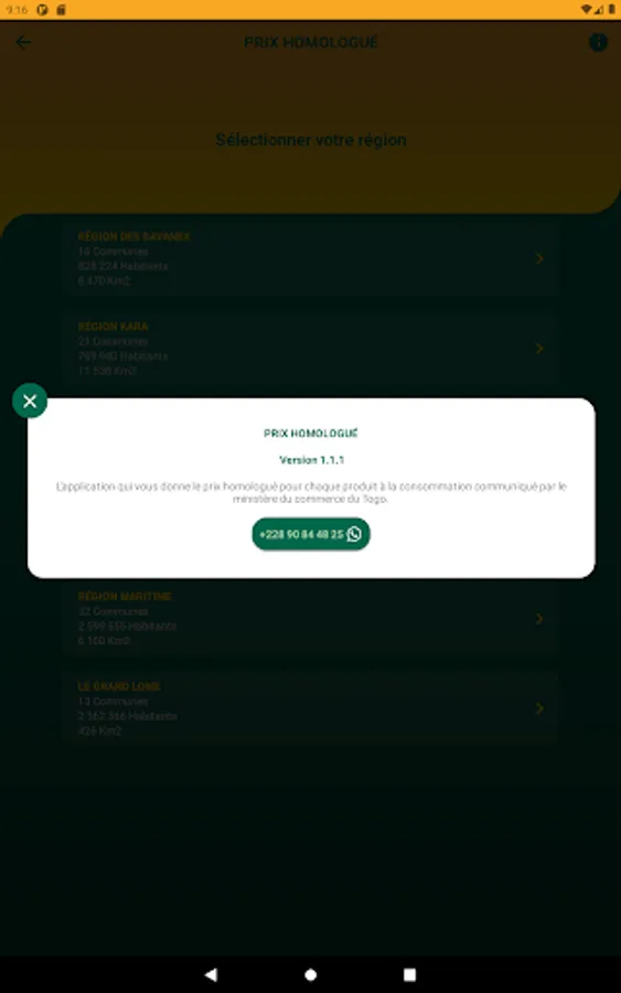 The application that gives you the approved price for each consumer product communicated by the Ministry of Commerce of Togo. It is an idea of SARL SOLMAK with the aim of contributing against inflation. The data are those collections on the official channels of the Ministry of Commerce of Togo.