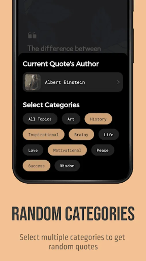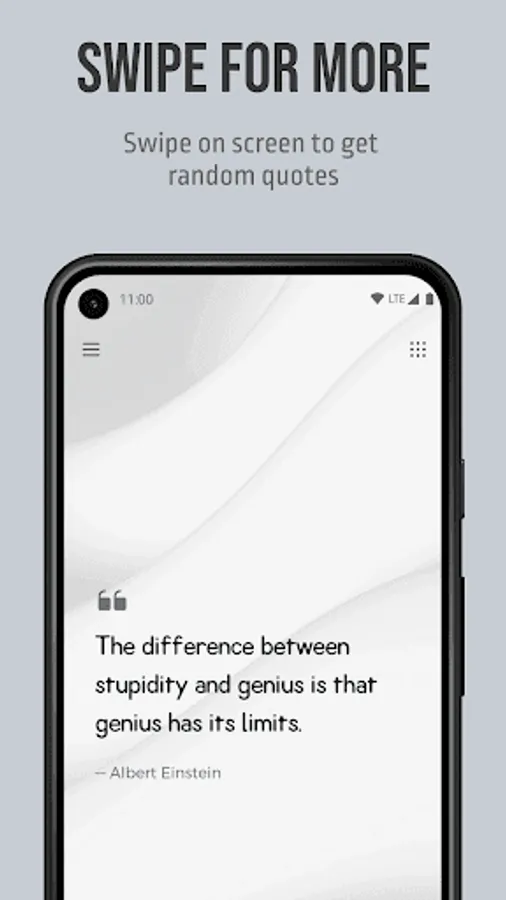 2. Swipe on the screen to get random positive quotes every time. You will be able to get various inspiring quotes from famous people on a random basis or choose according to categories.
