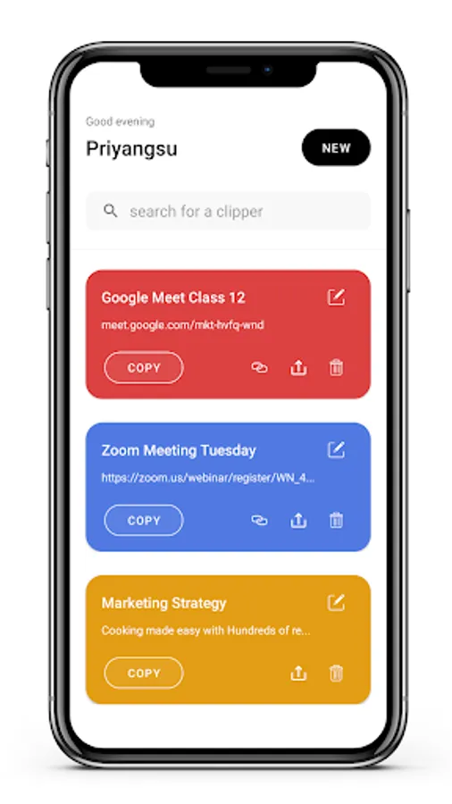 Easy clipping organisation and editing. Tap copy on a clipping to copy it to your clipboard and paste it anywhere you want.