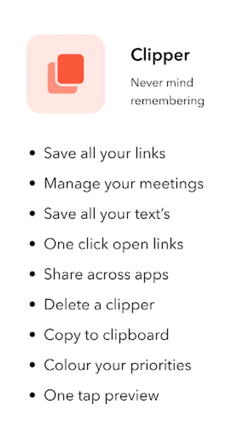 Clipper is a powerful clipboard manager. Access your clipper history later and organise clipper's in lists. Copy, paste, preview, edit and share their contents. Store repetitive pieces of text in Clipper and copy them whenever you need to. Take control of copy and paste with Clipper!