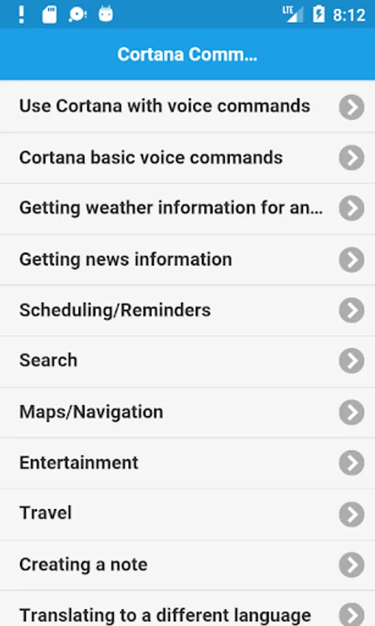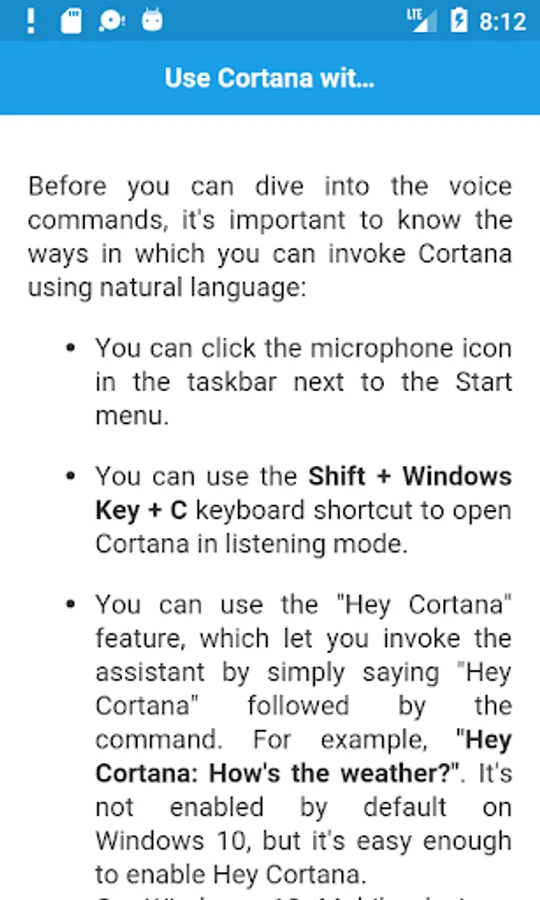 # Cortana basic voice commands