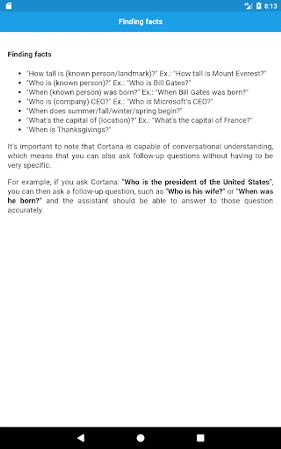 Microsoft's digital assistant can perform a variety of tasks, and it's full of handy tricks, but perhaps one of the best features is the advanced speech recognition that enables Cortana to understand the context of a natural voice conversation.
