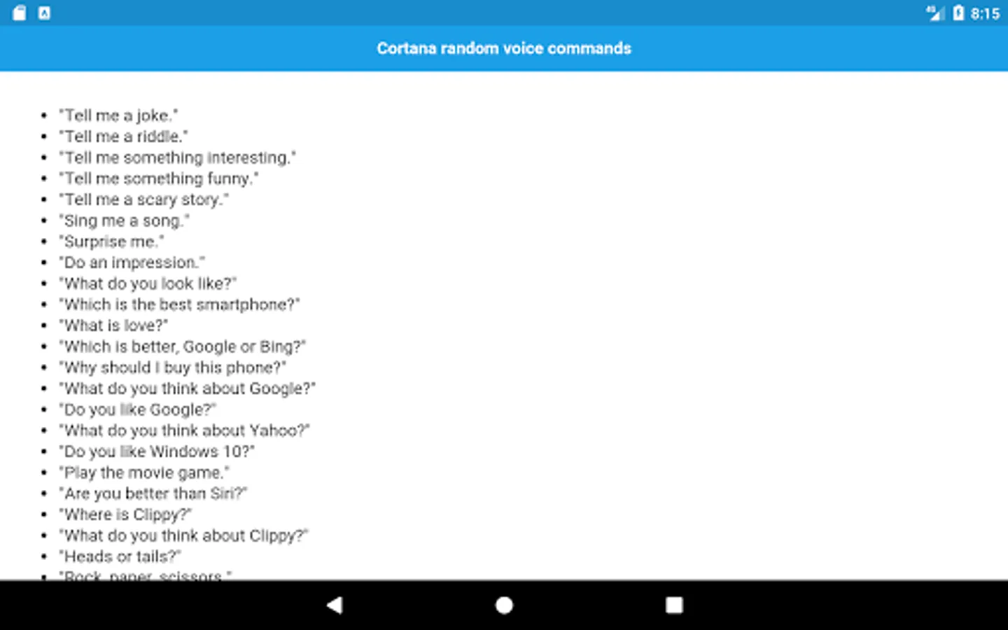 # Cortana random voice commands