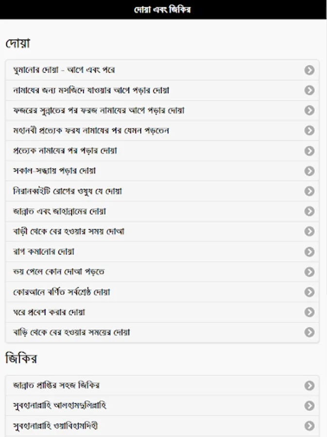 দোয়া ও জিকির নিয়ে বাংলা অ্যাপ। বাংলায় দোয়া ও জিকিরের উচ্চারণ এবং অর্থ। Doa o Jikir.
