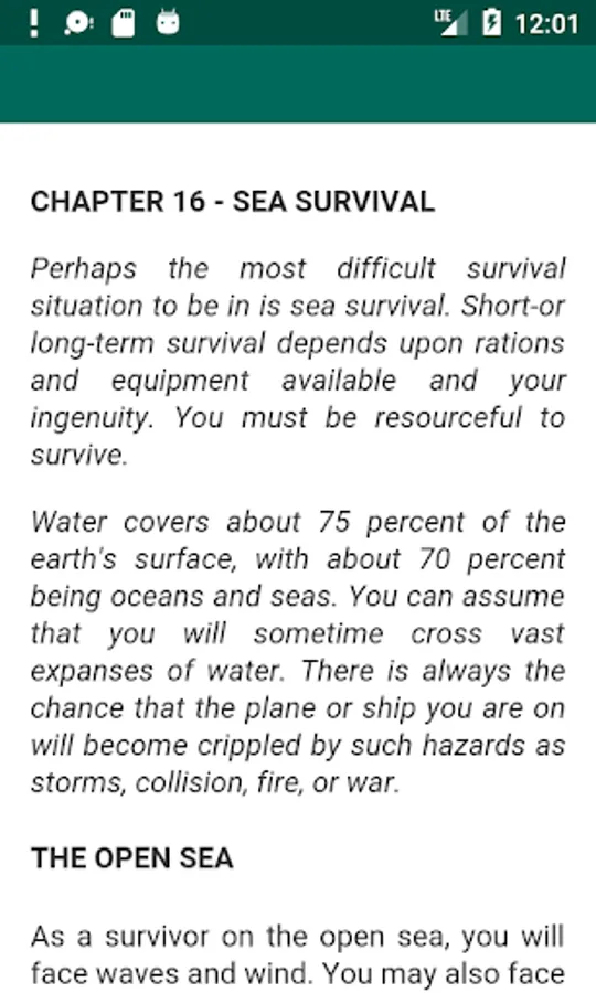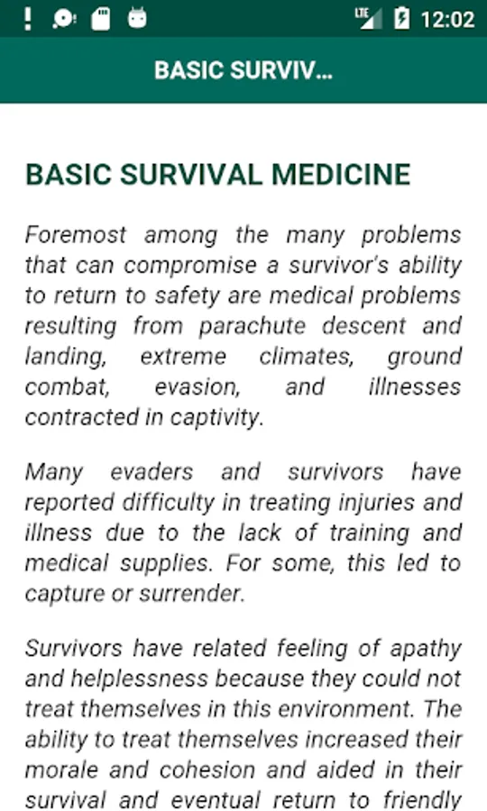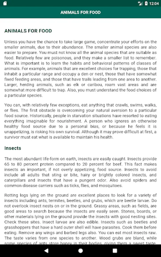 How to find water, food, shelter, build a fire, first aid, navigation and other survival skills necessary to survive on your own in the wild. A must app for Android Users. This app content is full offline. So, you can use this anytime any where in the world.