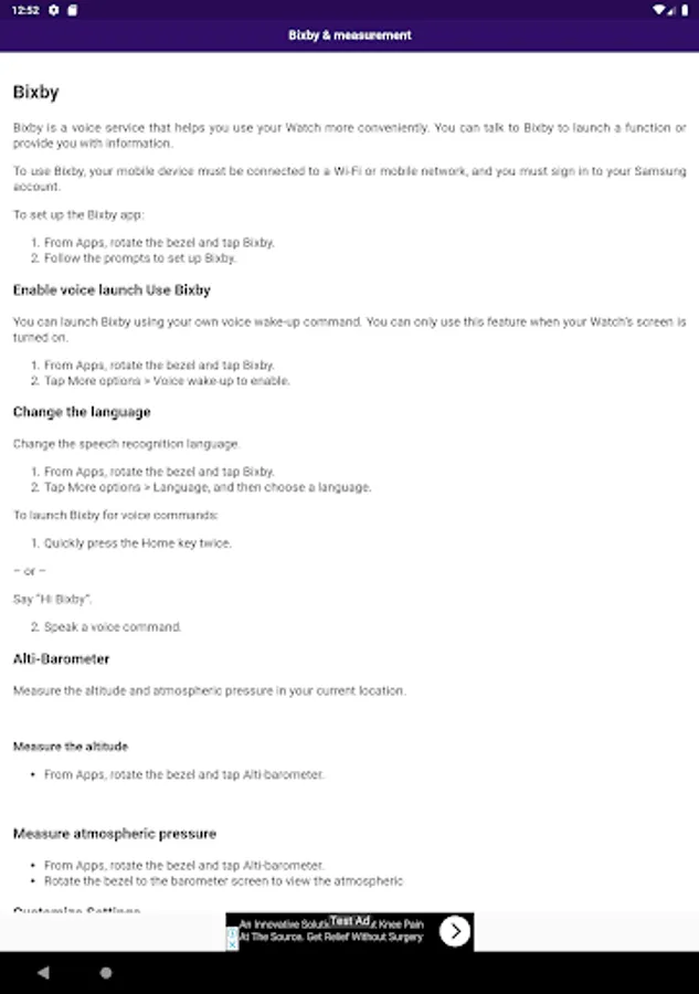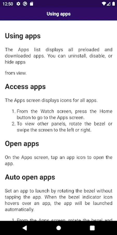 You can use various apps in Galaxy Watch, you will able to learn how to install new app and use them from this app. This app includes all essential tips and tricks you can use in your watch. Inside the app: