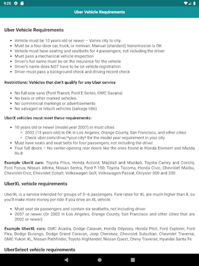 # Uber Phone Requirements, Driver Requirements, Vehicle Requirements.