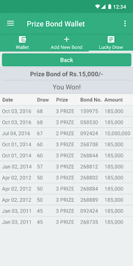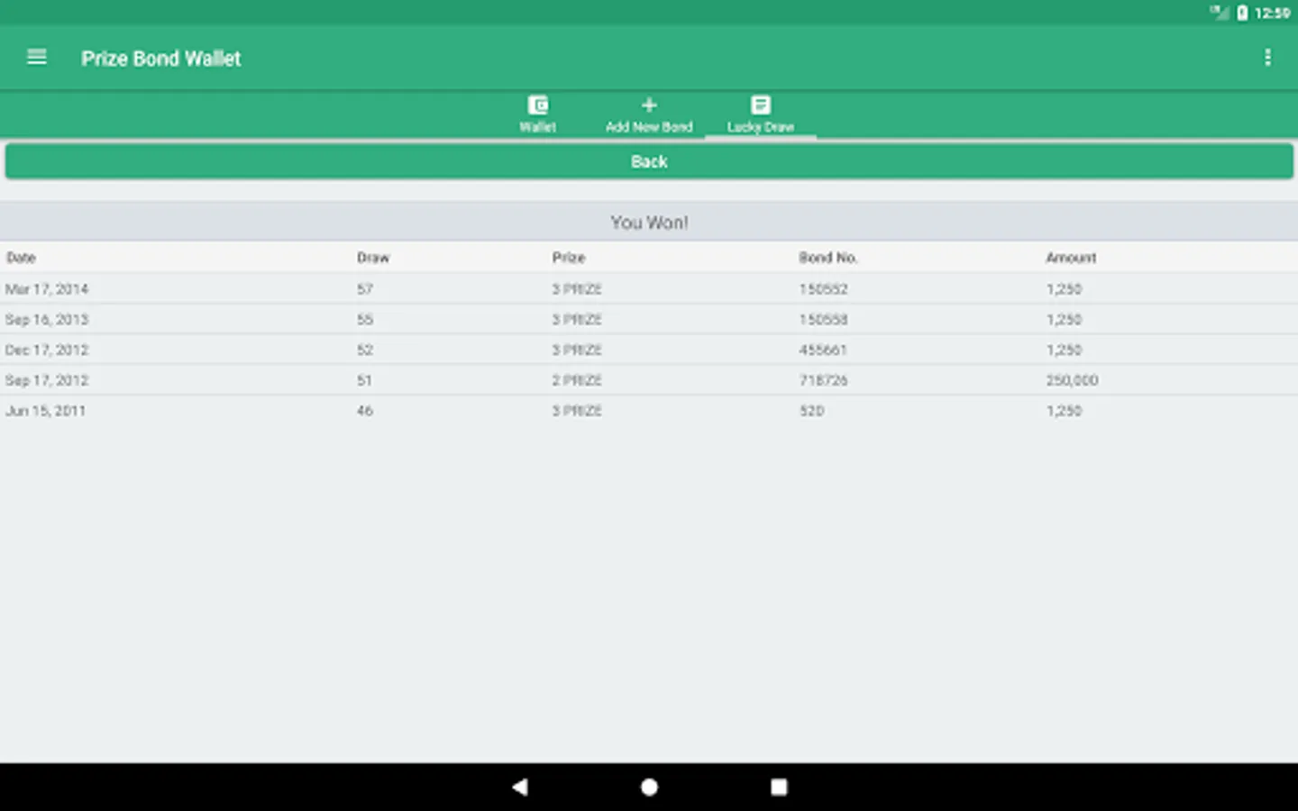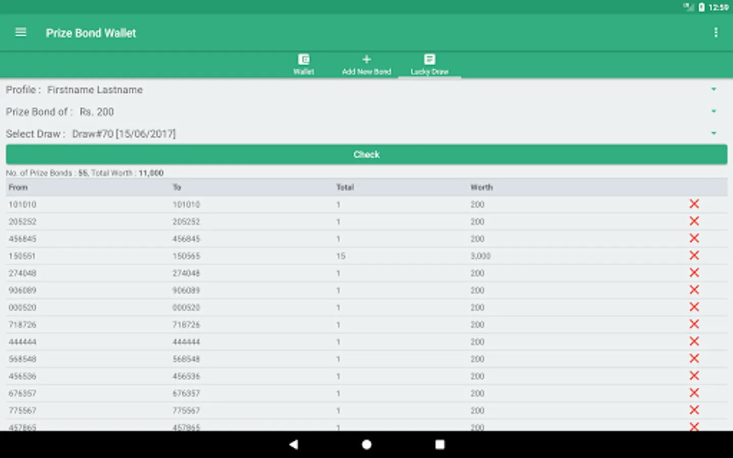 Prize Bond Wallet app for android lets you check your prize bonds in android device.