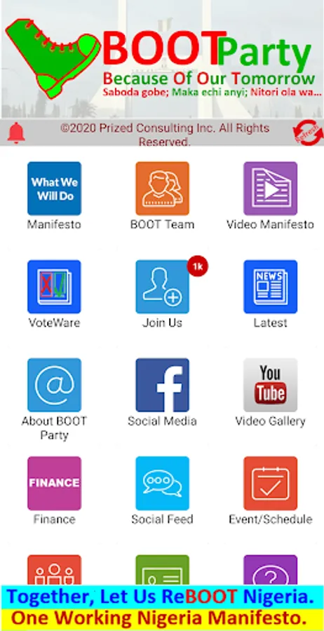 BOOT Party is registered and regulated by the Federal Republic of Nigeria's Independent National Electoral Commission (INEC) as a political party. https://www.inecnigeria.org/party/boot-party/