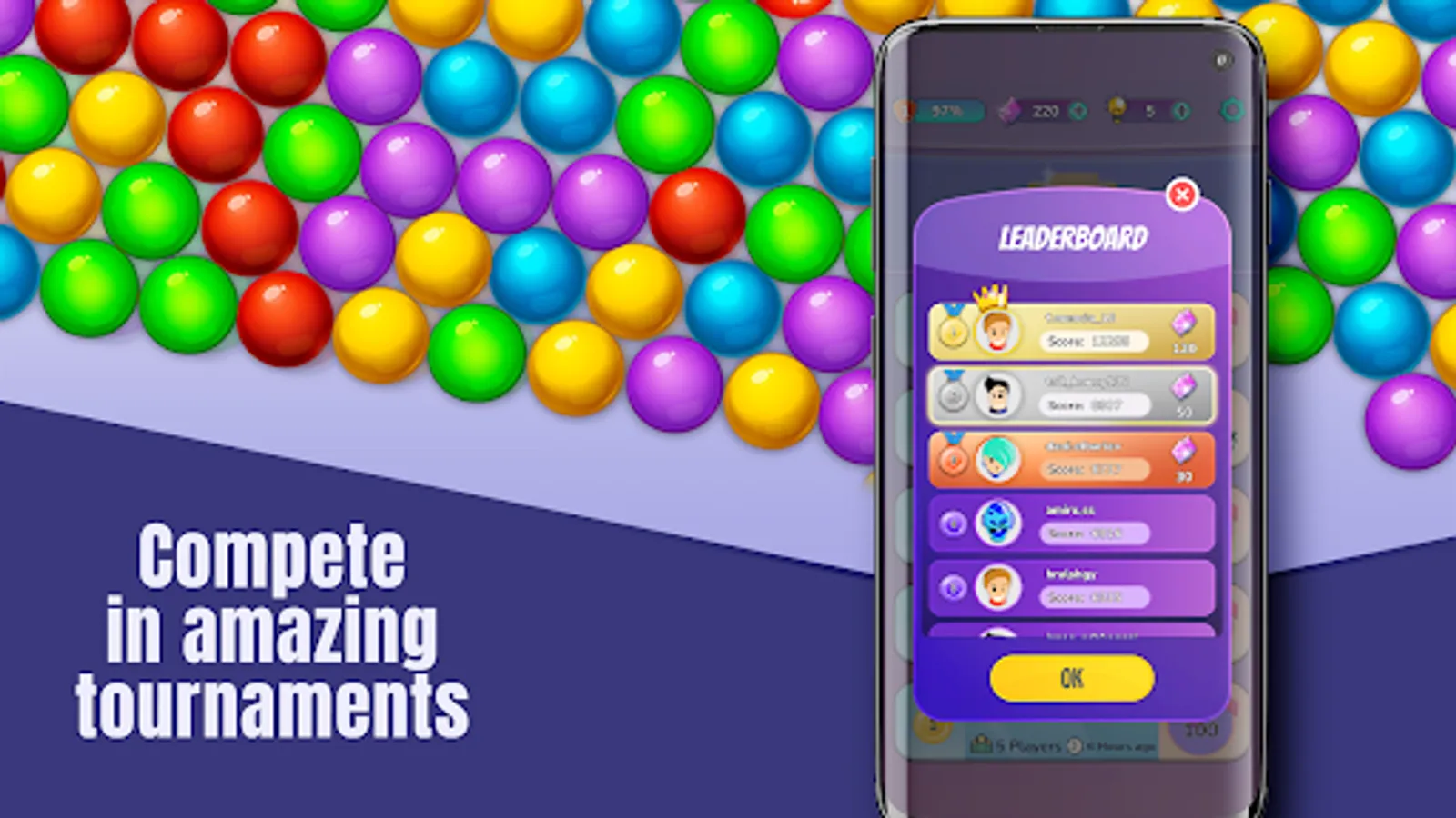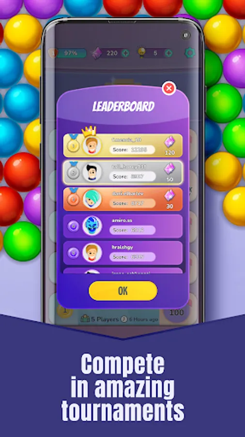 Get ready for an epic time on Bubble Shooter Pop Multiplayer, the multiplayer game that lets you compete with others, challenge your friends and brag about it!