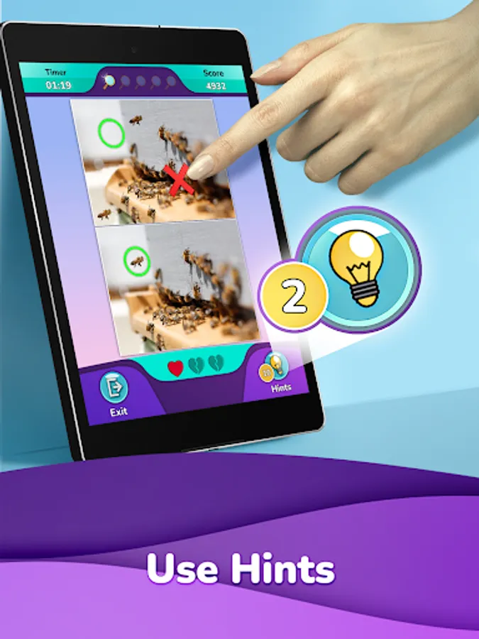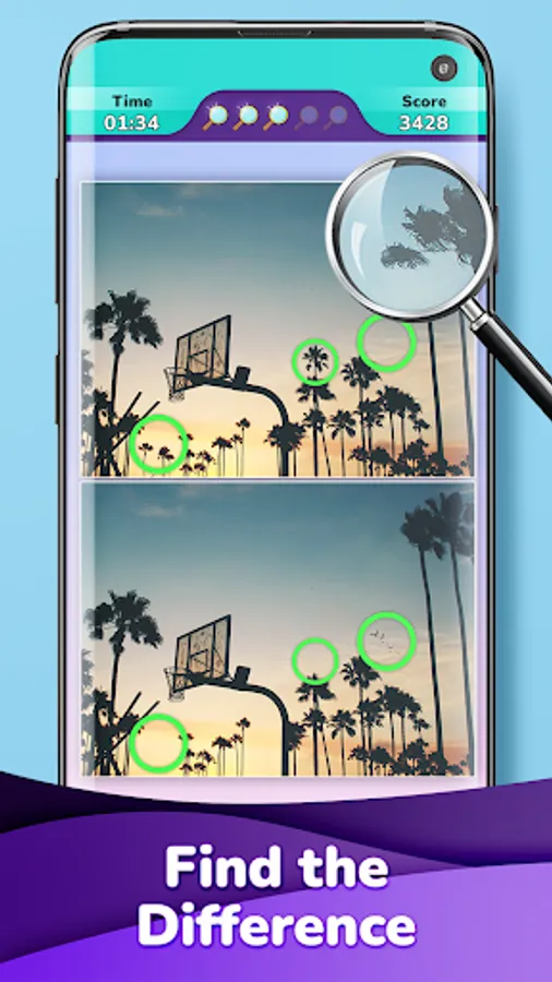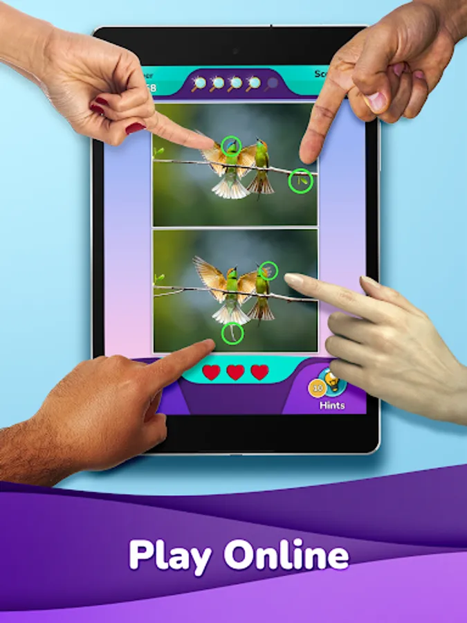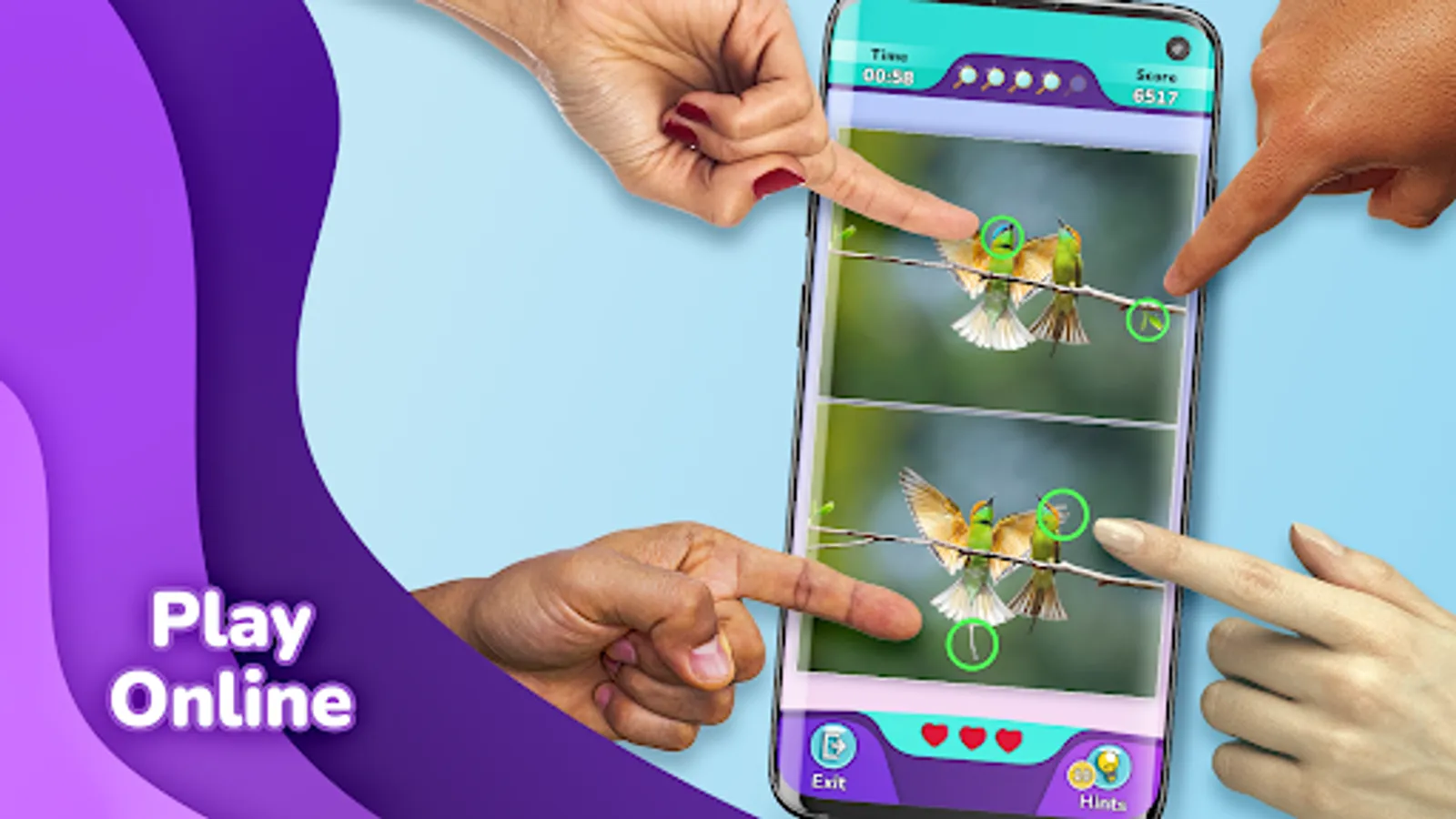 - Try to find 5 differences in picture in the time allowed, search for small invisible differences.