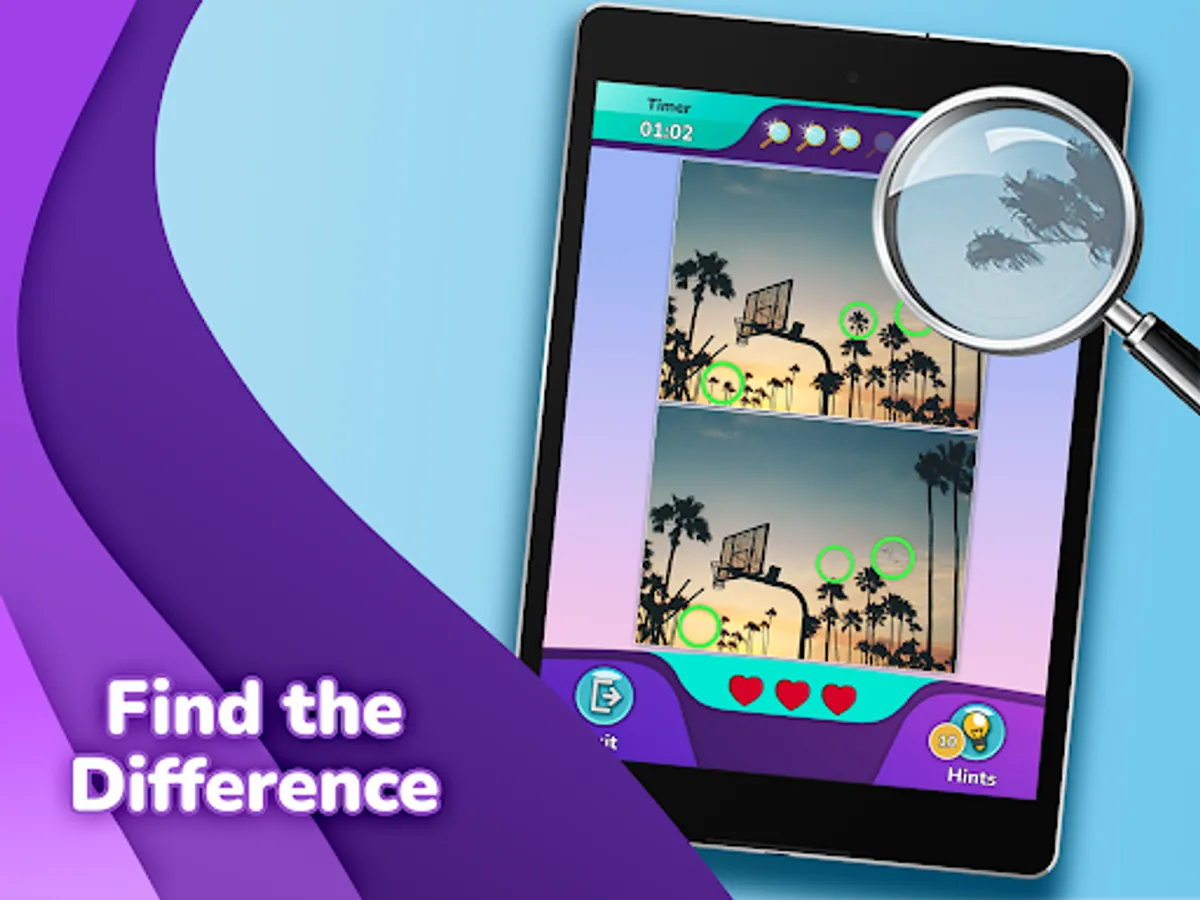 - Enjoy the puzzle with tons of levels, win all find the difference games for free!
