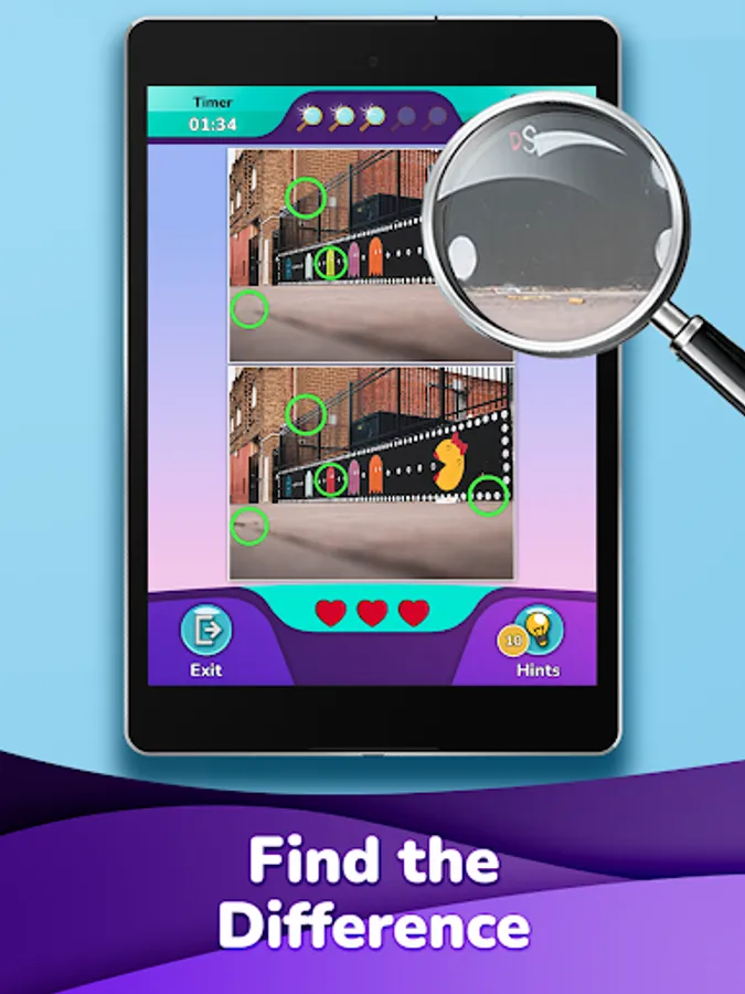 - Become a professional finder of 5 differences by solving hard and easy picture puzzles.