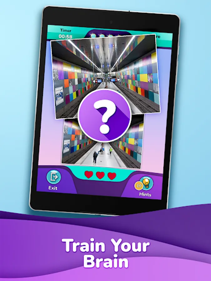 If you like playing entertaining mind games and finding the differences, this attention booster will bring you numerous benefits! Win other player while Improve your concentration skills, train your brain, solve the puzzle, take part in a photo hunt and find differences! Sometimes it can be hard to realize what's different between two similar pictures. But do your best to spot them in the time allowed and win your opponent’s gems!