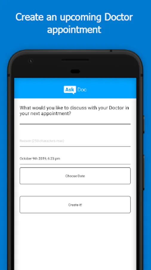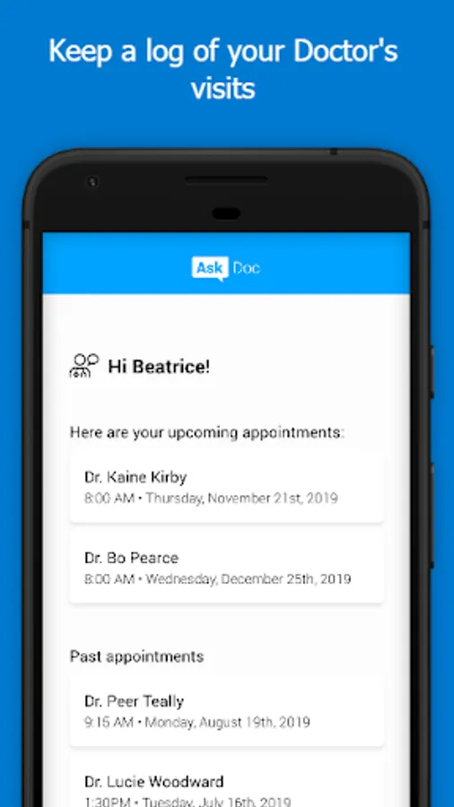 Prepare for your Doctor appointment: List your reasons for a scheduled doctor's appointment and AskDoc will send them directly to your Doctor.