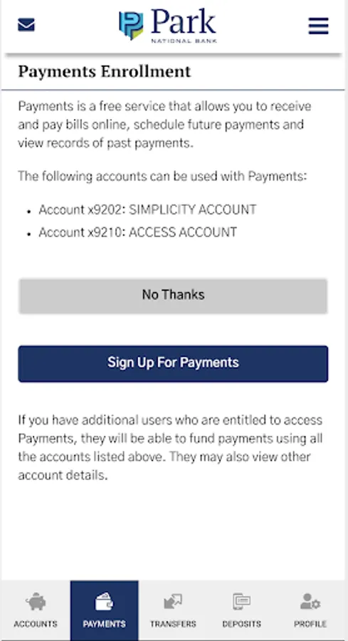 Park National Bank’s mobile banking app is the ultimate connection to your money – and it’s free! Enjoy an updated mobile banking experience with enhanced features and added services, plus the convenience of personal online banking, all at your fingertips. After downloading the app, login with your online banking ID and password.