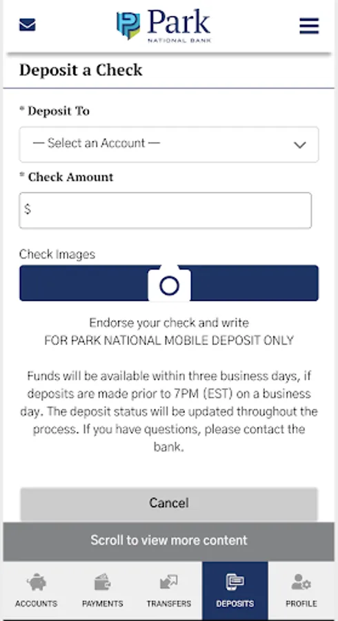 DEPOSIT IT: Use your camera to take a picture and deposit checks into any Park checking or savings account.
