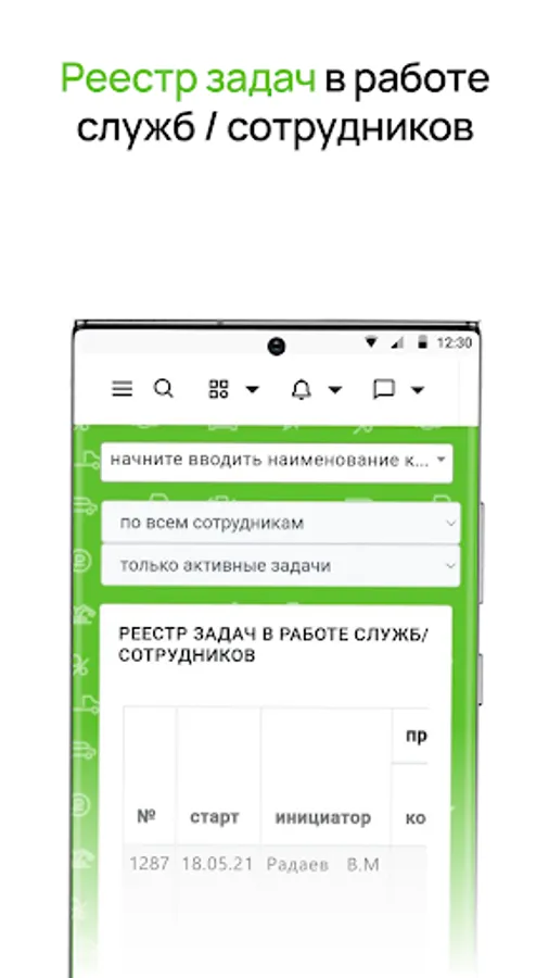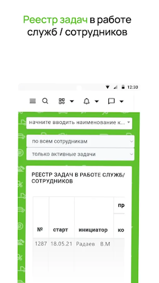 The mobile application of PR-Leasing LLC is intended for internal use by company employees and has all the necessary functionality for full-fledged work with tasks, internal documents, training materials, in real time, outside the office.