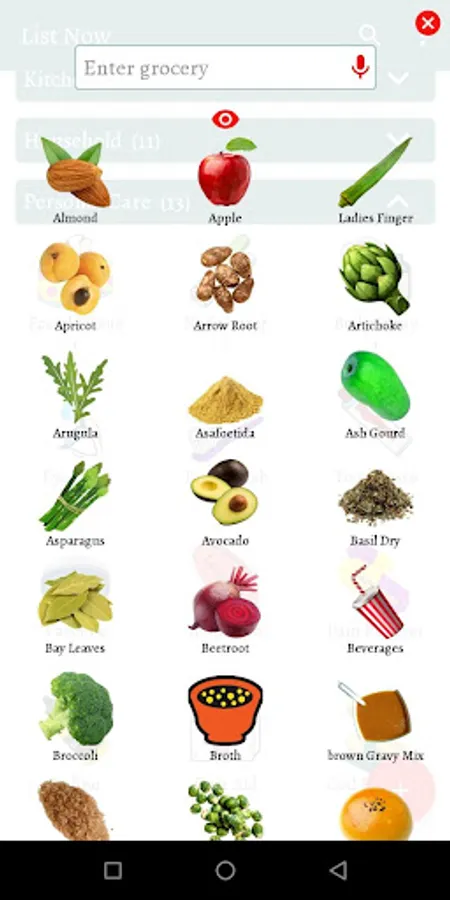 List Now provides graphical representation of over 1500+ grocery and other items, which makes your shopping list more interesting and attractive.