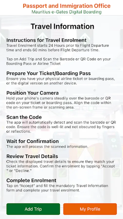 • Effortless Travel Experience: Use the digital boarding app for hassle-free travel within Mauritius. Simply scan download PIO Digital Boarding app, Register and Verify ID details, Enrol upcoming travel, Scan the boarding pass and breeze through the e-gates.