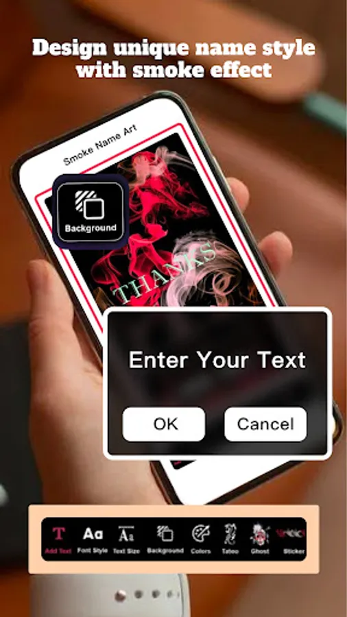 This App contains a large variety of fonts, emojis and unique designer smoke effects.
