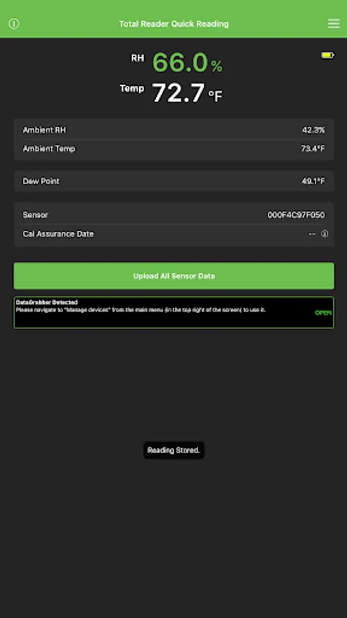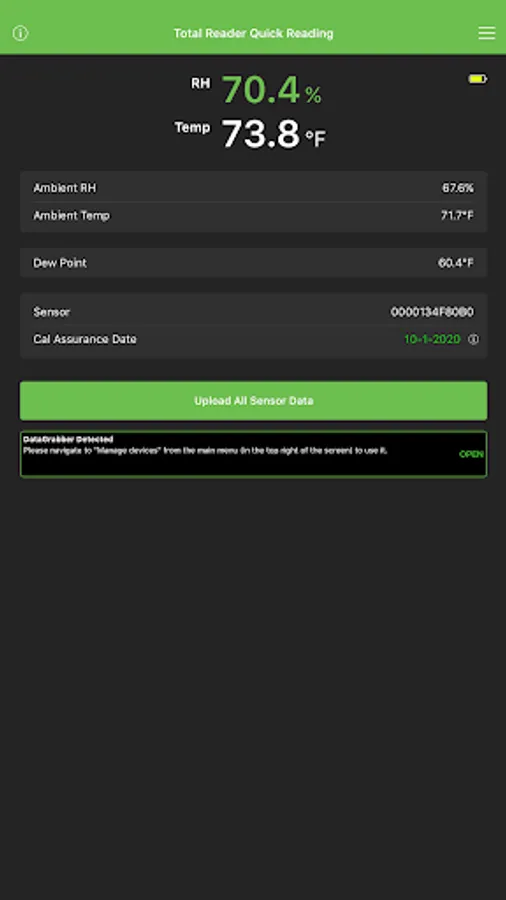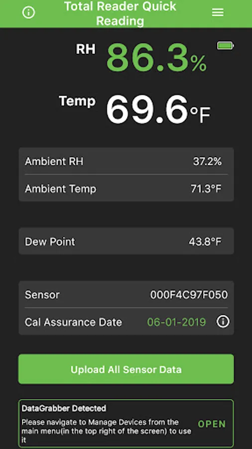 The DataMaster L6 app is designed to be used only with Rapid RH L6 Smart Sensors, Rapid RH DataGrabbers, and the Rapid RH Total Reader available at www.rapidrh.com.