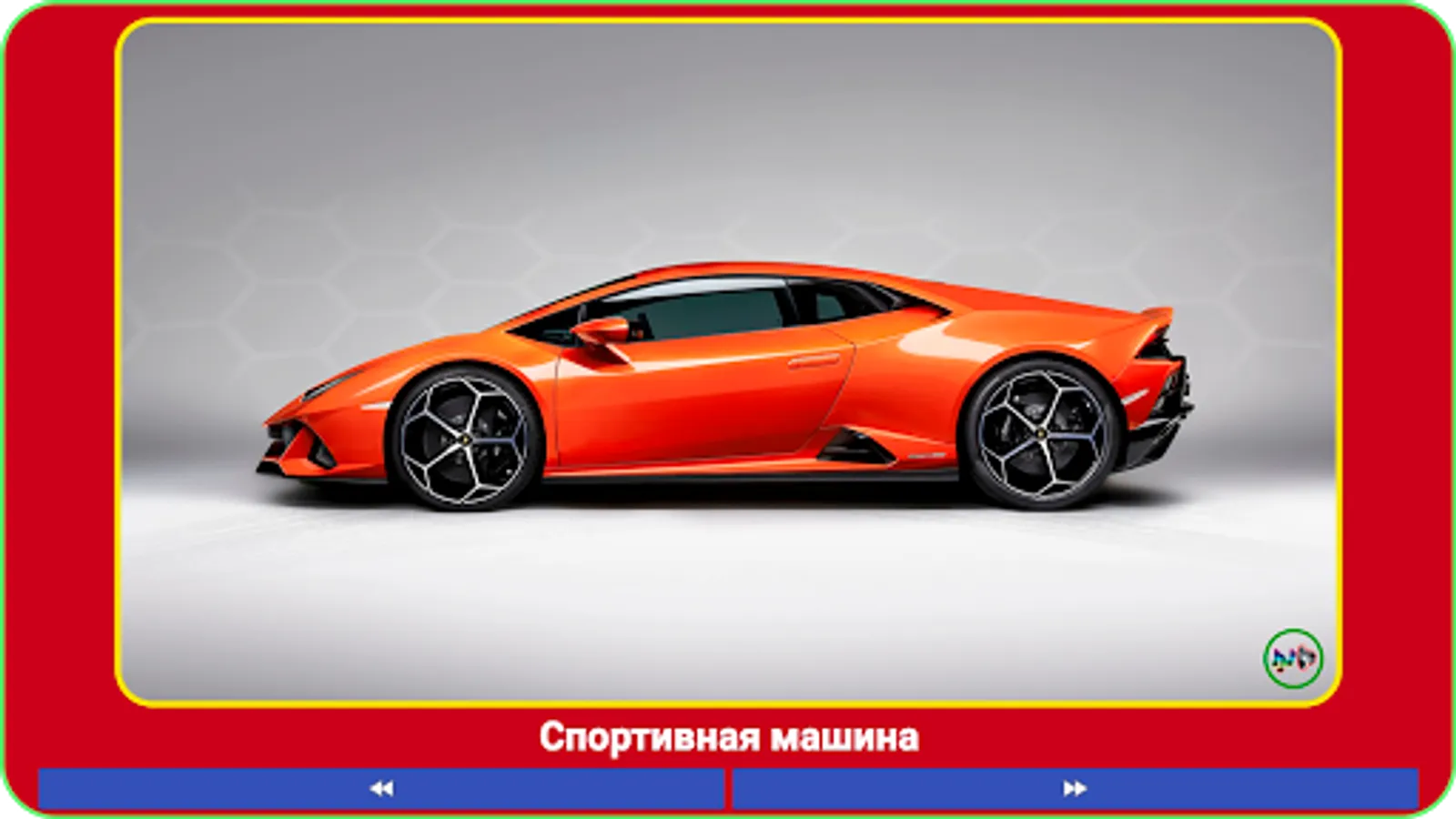 Application, Cars and planes for kids. A slightly unusual approach to providing information. At the beginning of the application there is a fast driving in a sports car and flying in a fighter jet. In order to hear the sound of transport, you need to click on the picture.