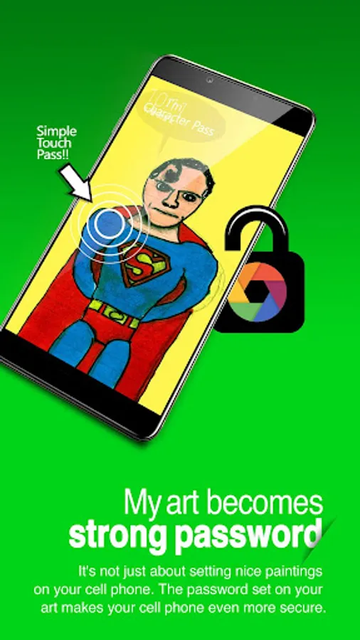 Display a cool photo on my cell phone screen and use it as a quick and simple way to unlock by touching specific positions of the photo!!