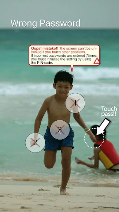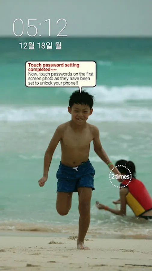 The touch lock screen can simply set a "touch password" with the touch of specific positions on my photo such as eyes, nose, mouth, face, or hand.