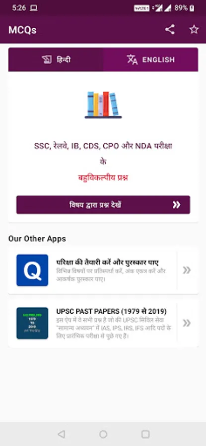 This app provides all those questions (Hindi and English) which have been asked in the various government exams and will help aspirant to access a large number of questions for his / her exam preparations.