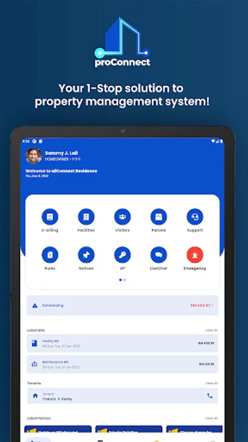 proConnect is designed to provides fully digitalised PMS solutions for the convenience of the community in residential. This version includes core features such as:
