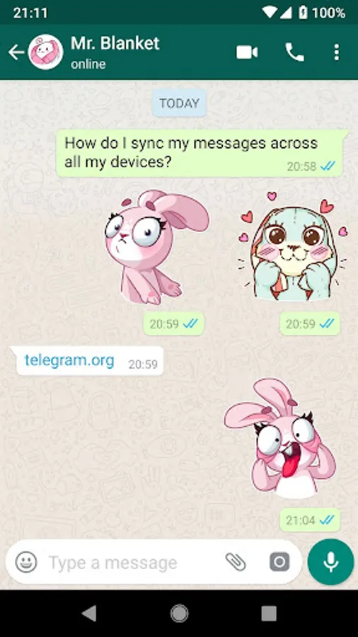 The Telegram stickers in this app are published with permission from Telegram, obtained at stickers@telegram.org