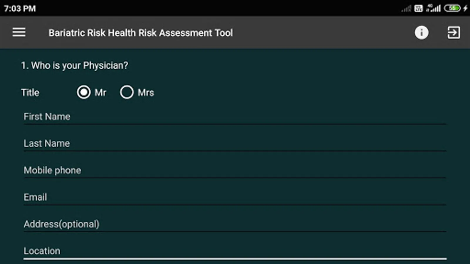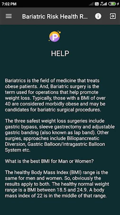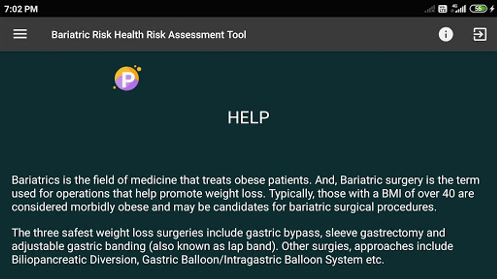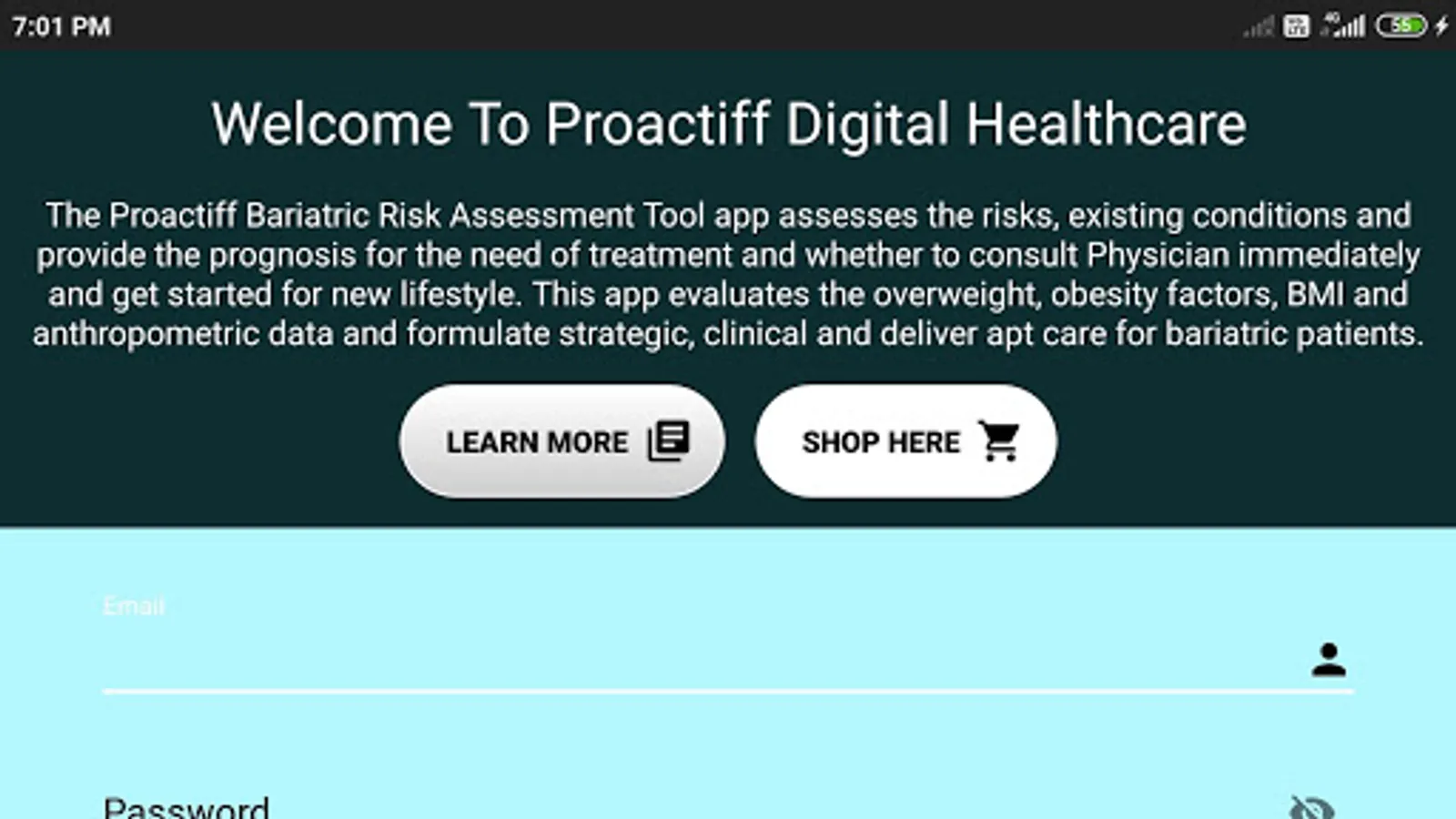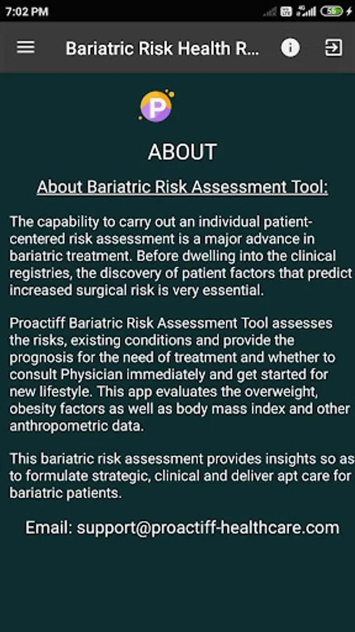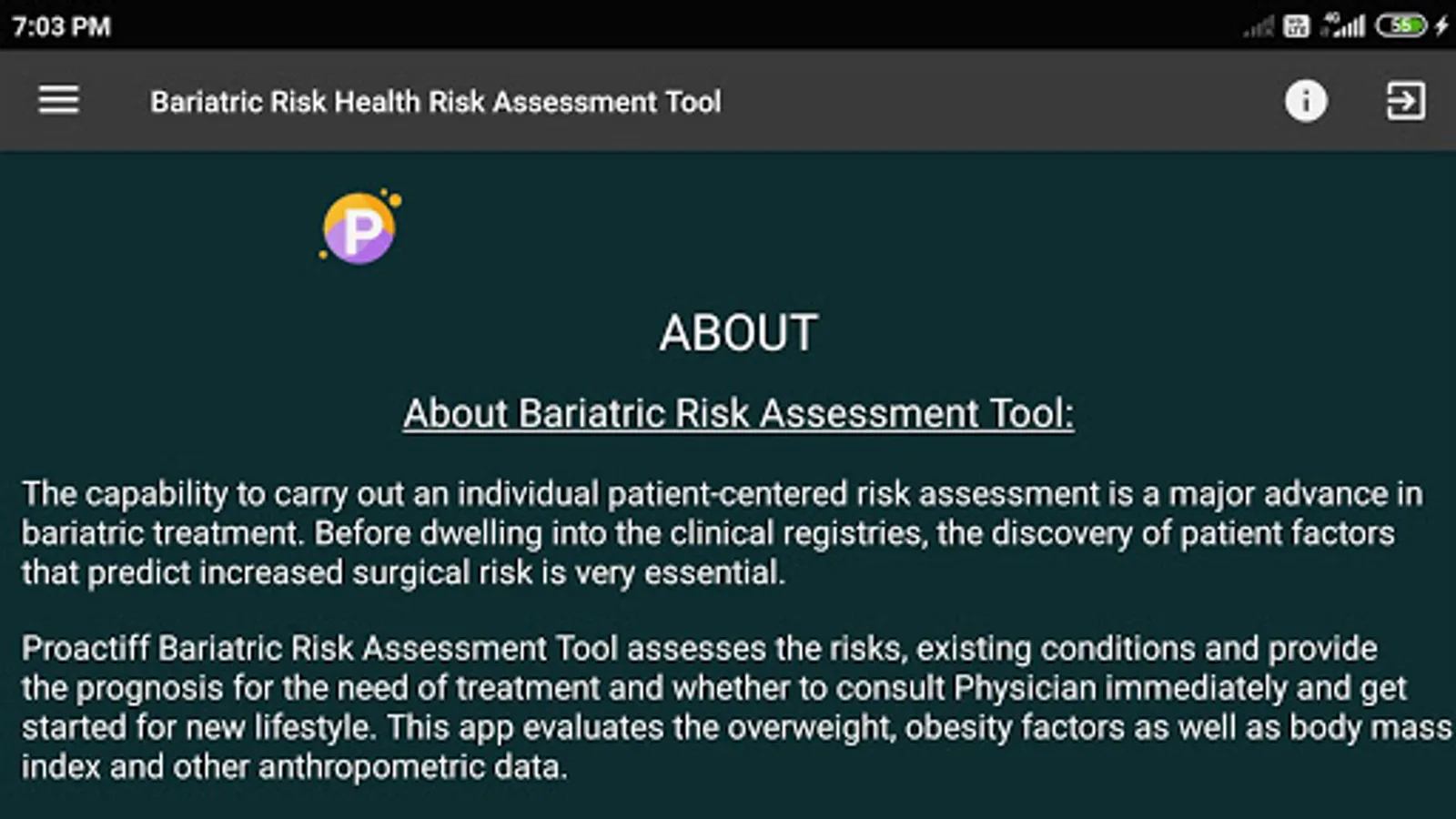 Proactiff Bariatric Risk Assessment Tool assesses the risks, existing conditions and provide the prognosis for the need of treatment and whether to consult Physician immediately and get started for new lifestyle. This app evaluates the overweight, obesity factors as well as body mass index and other anthropometric data.