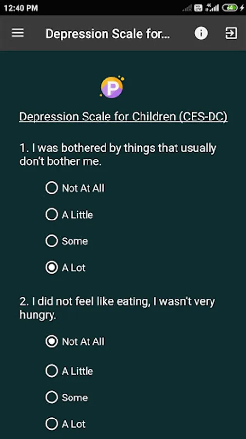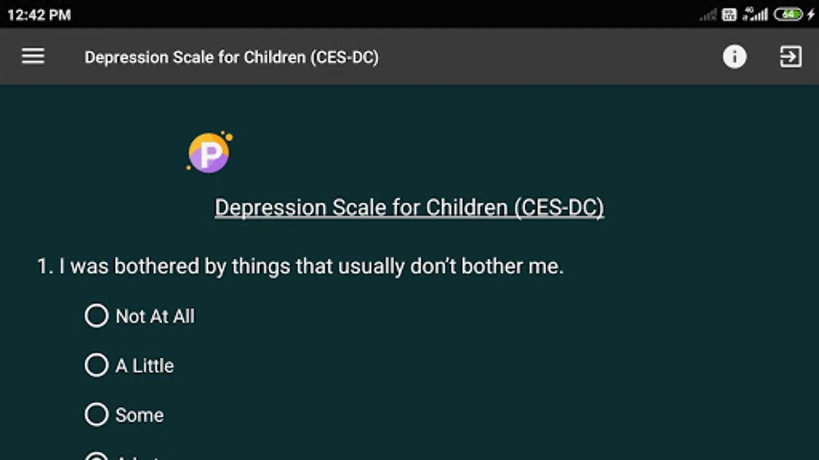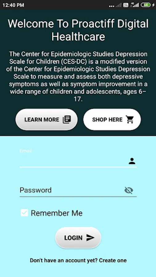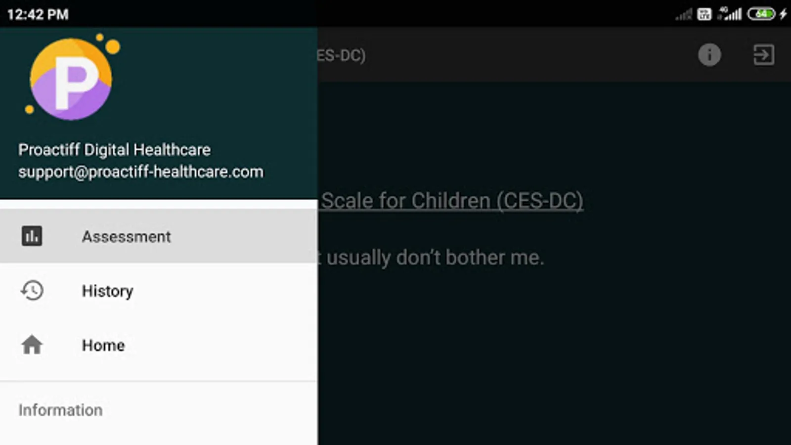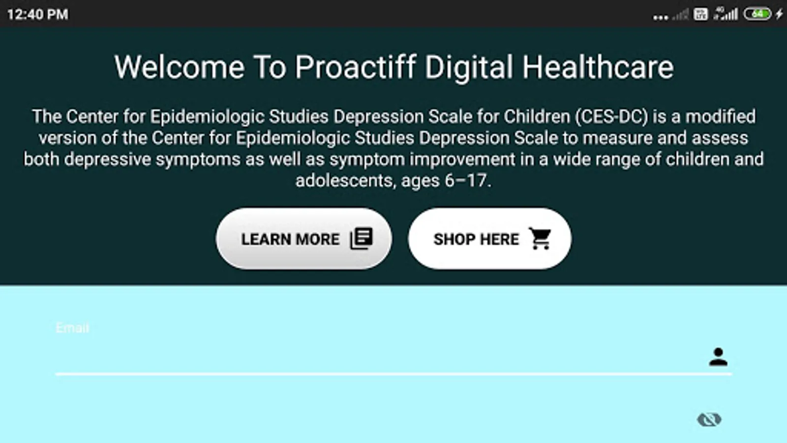 Proactiff Digital Healthcare Center for Epidemiologic Studies Depression Scale for Children (CES-DC) is a 20-item self-report depression inventory to assess for depressive symptoms in children, adolescents, and young adultsages 6-23 and measures depressive symptoms severity in the general population. The CES-DC app is widely used for depression screening.